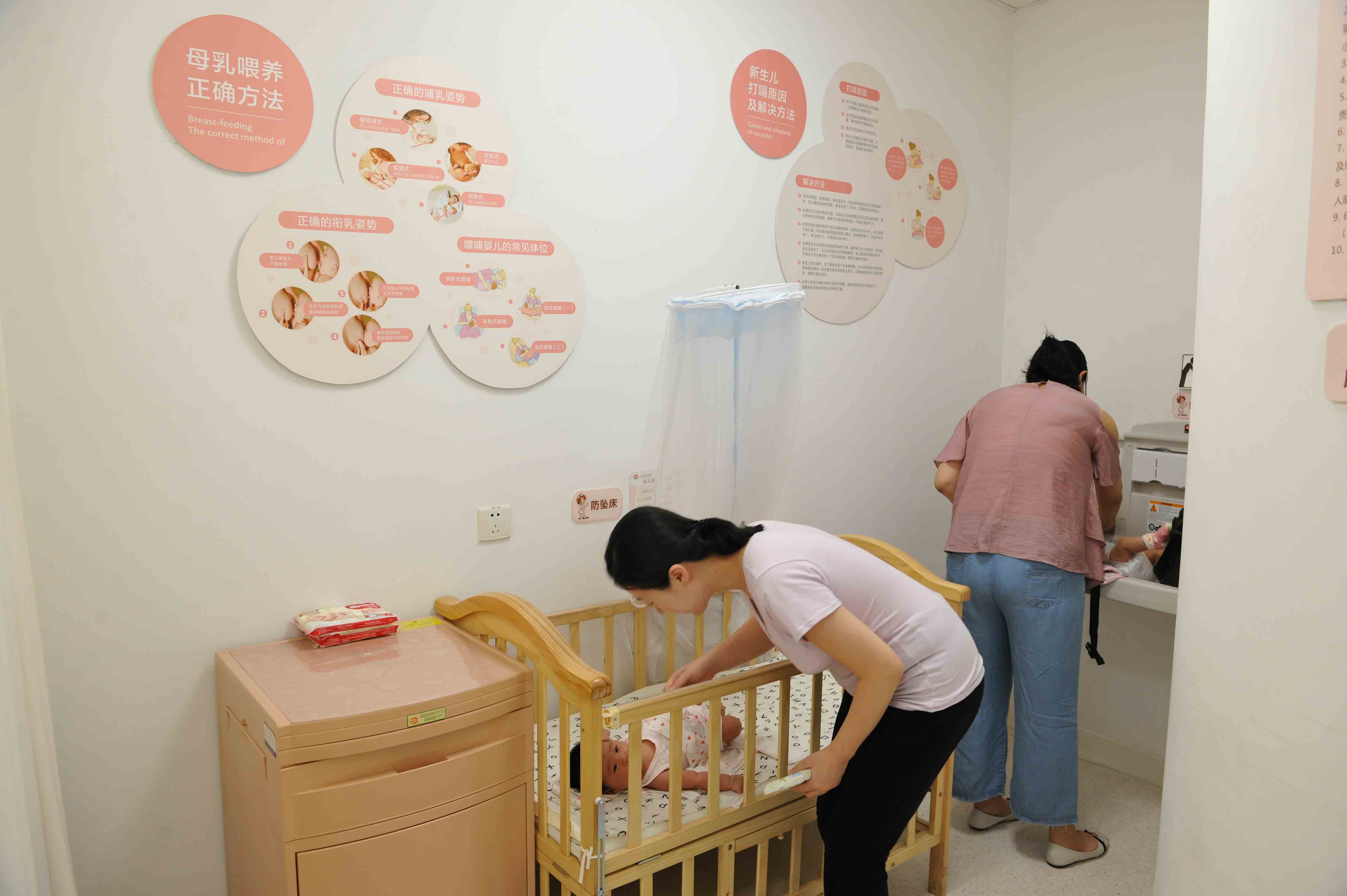 我院母嬰室設(shè)在三樓兒科門診導(dǎo)診臺(tái)后。母嬰室設(shè)有尿布臺(tái)、哺乳椅、嬰兒床、置物柜、洗手池、冰箱、母乳喂養(yǎng)指導(dǎo)手冊(cè)等必需物品,同時(shí)在三樓采血崗候診區(qū)設(shè)有紙尿褲自動(dòng)售賣機(jī)。我院母嬰室定期進(jìn)行紫外線消毒,有需要的媽媽可以按照院內(nèi)導(dǎo)引牌指導(dǎo)到我院母嬰室休息、哺乳。